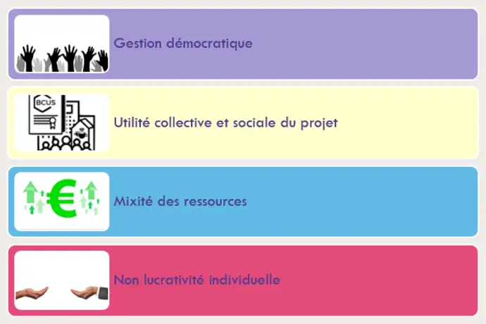 Le projet s'inscrit dans le cadre de l'économie sociale et solidaire puisqu'il répond aux 4 principes de l'ESS dictés par la loi N° 2014-856 du 31 juillet 2014.